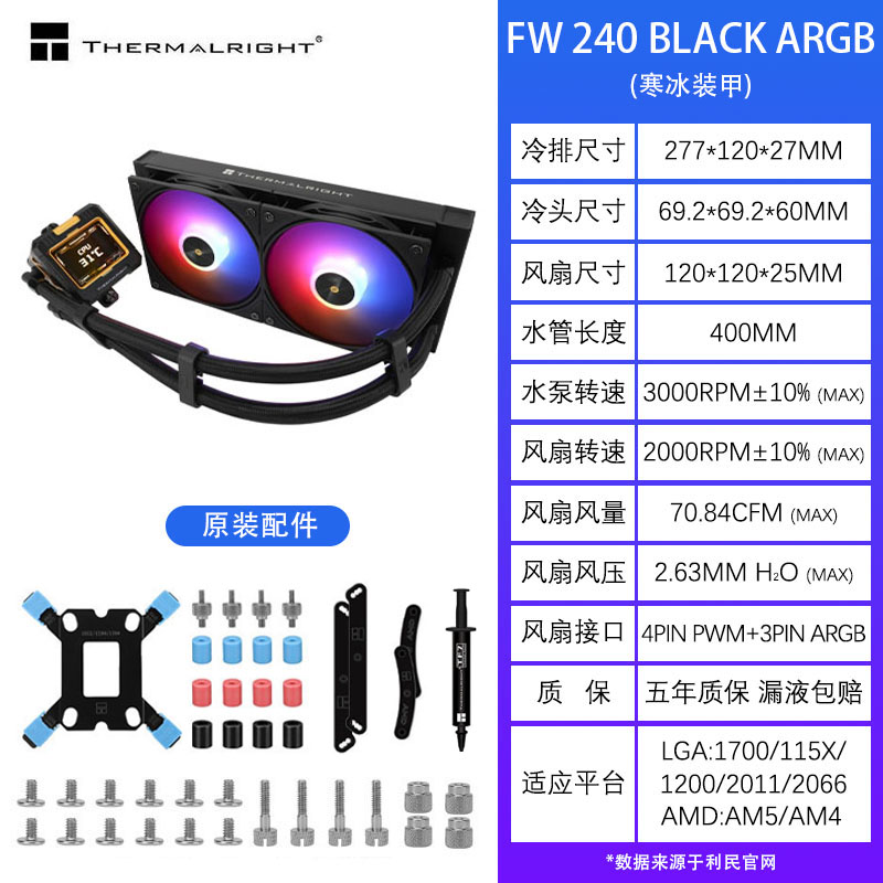 商品名称:利民FROZEN WARFRAME 360一体式水冷散热器电脑CPU风扇FW240水冷