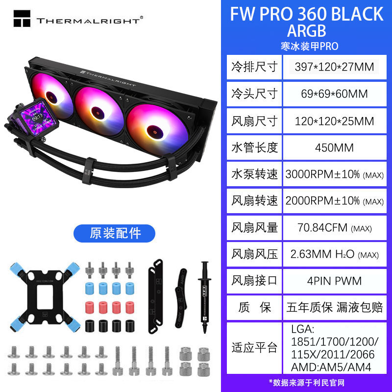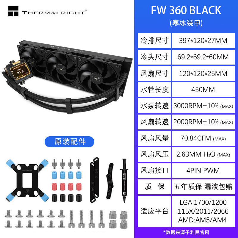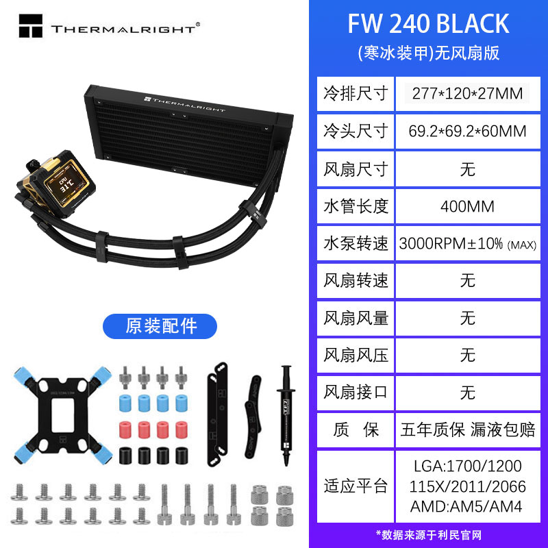 利民FROZEN WARFRAME 360一体式水冷散热器电脑CPU风扇FW240水冷