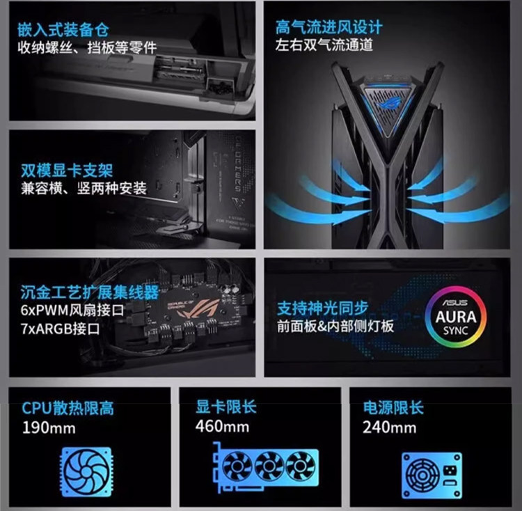 创世神ROG华硕GR701灯板定制机箱吹雪铝合金机箱加工灯板渐变漆