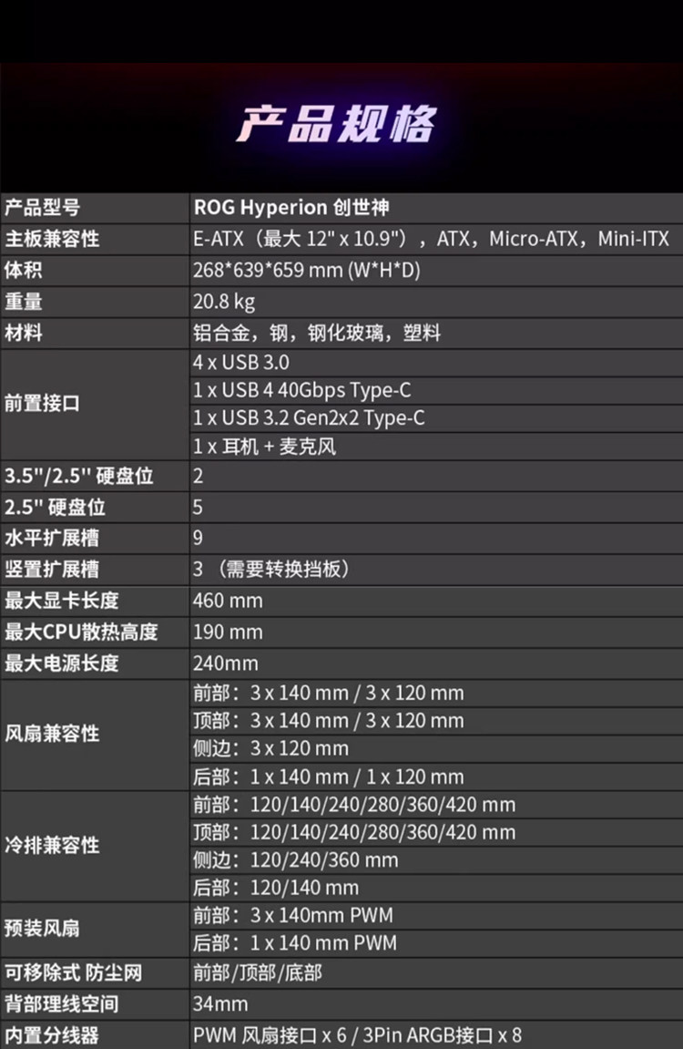 • 兼容主板类型:E-ATX